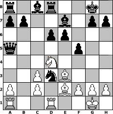game notation in PGN-format [Event "Mit Sizialisch in den Herbst!"] [Site "www.myChess.de"] [Date "2005.09.22"] [Round "1"] [White "Falcor"] [Black "Baehr008"] [ECO "B41"] [WhitemyELO "1685"] [BlackmyELO "1957"] [Result "0-1"] [TimeControl "10/1728000"] [WhiteDays "10"] [BlackDays "20"] [MyChessNo "17688"] 1. e4 c5 2. Nf3 e6 3. d4 cxd4 4. Nxd4 Nf6 5. Bg5 Qa5+ 6. Bd2 Qe5 7. Be3 Nxe4 8. Qd3 Nc6 9. Nc3 Nxc3 10. bxc3 Be7 11. Be2 O-O 12. O-O Rd8 13. Rfd1 d6 14. Nf3 Qa5 15. Nd4 Ne5 16. Qe4 f5 17. Qd3 Nxd3 0-1 position notation in FEN-format r1br2k1/pp2b1pp/3pp3/q4p2/3N4/2PnB3/P1P1BPPP/R2R2K1 - - - 0 18 Captured white pieces: Captured black pieces: Click on a captured piece in order to display the desired move!