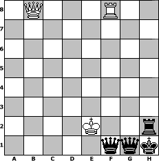 game notation in PGN-format [Event "QGD: Orthodox Verteidigung"] [Site "www.myChess.de"] [Date "2008.08.11"] [Round "1"] [White "andreas007"] [Black "neve"] [ECO "D64"] [WhitemyELO "1391"] [BlackmyELO "1466"] [Result "0-1"] [TimeControl "10/2592000"] [WhiteDays "238"] [BlackDays "240"] [MyChessNo "47046"] 1. d4 d5 2. c4 e6 3. Nc3 Nf6 4. Bg5 Be7 5. e3 O-O 6. Nf3 Nbd7 7. Rc1 c6 8. Qc2 a6 9. Bd3 h6 10. Bh4 b6 11. O-O Bb7 12. a3 b5 13. cxb5 cxb5 14. b4 Rc8 15. Qe2 Nb6 16. Ne5 Nc4 17. Nxc4 dxc4 18. Bc2 Rc7 19. Bxf6 Bxf6 20. Rfd1 Qa8 21. e4 Bg5 22. Ra1 Re7 23. a4 Qe8 24. axb5 axb5 25. Ra5 Bc6 26. g3 Rb7 27. h4 Bd8 28. Ra8 Re7 29. Ra6 f5 30. f3 f4 31. g4 Ref7 32. g5 hxg5 33. hxg5 Bxg5 34. Qh2 Rf6 35. Kf2 Rh6 36. Qg2 Bh4+ 37. Ke2 Rff6 38. Rg1 Rfg6 39. Qf1 Bg3 40. e5 Rg5 41. Be4 Bd7 42. d5 g6 43. dxe6 Bxe6 44. Bd5 Bxd5 45. Nxd5 Qxe5+ 46. Kd2 Qxd5+ 47. Kc2 Rh7 48. Qe2 Re5 49. Qd1 Rh2+ 50. Kc1 Qxd1+ 51. Rxd1 Kh7 52. Rd7+ Kh6 53. Rdd6 Re1+ 54. Rd1 Bh4 55. Rb6 Rh3 56. Rxb5 Rxf3 57. Rc5 Rxd1+ 58. Kxd1 Rd3+ 59. Kc2 f3 60. Rxc4 f2 61. Rf4 Rd5 62. Rxh4+ Rh5 63. Rf4 Rh2 64. Kd1 g5 65. Rf6+ Kg7 66. Rf5 Kg6 67. Rf8 g4 68. Ke2 Kg5 69. Rg8+ Kf4 70. Rf8+ Kg3 71. Rd8 Kg2 72. Rf8 g3 73. b5 Kh1 74. b6 g2 75. b7 g1=Q 76. b8=Q f1=Q# 0-1 position notation in FEN-format 1Q3R2/8/8/8/8/8/4K2r/5qqk - - - 0 77 Captured white pieces: ![]() ![]() ![]() ![]() ![]() ![]() ![]() ![]() ![]() ![]() ![]() ![]() ![]() ![]() ![]() Captured black pieces: ![]() ![]() ![]() ![]() ![]() ![]() ![]() ![]() ![]() ![]() ![]() ![]() ![]() ![]() ![]() Click on a captured piece in order to display the desired move!