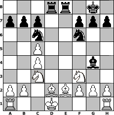 | game notation in PGN-format [Event "Skandinavisches Turnier"] [Site "www.myChess.de"] [Date "2013.05.06"] [Round "1"] [White "zidan"] [Black "Wulfen49"] [ECO "B01"] [WhitemyELO "1293"] [BlackmyELO "1281"] [Result "0-1"] [TimeControl "10/2592000"] [WhiteDays "00"] [BlackDays "58"] [MyChessNo "88164"] 1. e4 d5 2. exd5 Nf6 3. c4 e6 4. dxe6 Bxe6 5. Nf3 Bc5 6. d4 O-O 7. dxc5 Qxd1+ 8. Kxd1 Nc6 9. Nc3 Rad8+ 10. Bd2 Bg4 11. Be2 Rfe8 0-1 position notation in FEN-format 3rr1k1/ppp2ppp/2n2n2/2P5/2P3b1/2N2N2/PP1BBPPP/R2K3R - - - 7 12 Captured white pieces:                              Captured black pieces:                               Click on a captured piece in order to display the desired move!