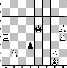 game notation in PGN-format [Event "Entdeckung der Langsamkeit 2"] [Site "www.myChess.de"] [Date "2012.02.18"] [Round "1"] [White "73DADDELDU37"] [Black "Bauer56"] [ECO "A02"] [WhitemyELO "1407"] [BlackmyELO "1497"] [Result "1-0"] [TimeControl "10/3456000"] [WhiteDays "160"] [BlackDays "160"] [MyChessNo "79997"] 1. f4 f5 2. Nf3 Nc6 3. d4 Nf6 4. d5 Nb4 5. c4 b6 6. a3 Ne4 7. axb4 e6 8. Bd2 exd5 9. cxd5 a5 10. bxa5 Bb7 11. e3 Bxd5 12. Nc3 c6 13. Nxe4 Bxe4 14. Be2 Bxf3 15. Bxf3 bxa5 16. Bc3 Qb6 17. Qe2 Bc5 18. Bxg7 Rg8 19. Bd4 O-O-O 20. O-O Bxd4 21. exd4 Rde8 22. Qf2 Re6 23. d5 Qxf2+ 24. Rxf2 Rge8 25. dxe6 Rxe6 26. Rc1 Re3 27. h4 h5 28. Rc5 a4 29. Rxf5 d5 30. Bxh5 Kd7 31. Re5 Rxe5 32. fxe5 Ke6 33. Rf6+ Kxe5 34. Rxc6 d4 35. Rc4 d3 36. Rxa4 1-0 position notation in FEN-format 8/8/8/4k2B/R6P/3p4/1P4P1/6K1 - - - 0 36 Captured white pieces: Captured black pieces: Click on a captured piece in order to display the desired move!