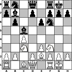 | game notation in PGN-format [Event "Winterturnier"] [Site "www.myChess.de"] [Date "2009.11.12"] [Round "1"] [White "werderfan"] [Black "muellerh"] [ECO "A40"] [WhitemyELO "1509"] [BlackmyELO "1480"] [Result "1-0"] [TimeControl "10/3456000"] [WhiteDays "39"] [BlackDays "00"] [MyChessNo "60590"] 1. d4 b6 2. c4 Bb7 3. Nf3 e6 4. e3 Nf6 5. Nc3 c5 6. dxc5 Bxc5 7. Be2 O-O 8. O-O 1-0 position notation in FEN-format rn1q1rk1/pb1p1ppp/1p2pn2/2b5/2P5/2N1PN2/PP1PBPPP/R1BQ1RK1 - - - 3 8 Captured white pieces:                              Captured black pieces:                               Click on a captured piece in order to display the desired move!