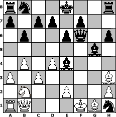 game notation in PGN-format [Event "Juli 2017"] [Site "www.myChess.de"] [Date "2017.07.12"] [Round "1"] [White "Hobbykegler"] [Black "faustballer"] [ECO "C01"] [WhitemyELO "1019"] [BlackmyELO "1505"] [Result "0-1"] [TimeControl "10/2592000"] [WhiteDays "42"] [BlackDays "60"] [MyChessNo "108843"] 1. e4 e6 2. d4 h6 3. Nc3 b6 4. a3 Bb7 5. b4 Be7 6. Be3 Nf6 7. Qb1 Nxe4 8. Nd1 Bg5 9. f4 Bf6 10. c3 Bh4+ 11. g3 Nxg3 12. Bh3 Nxh1+ 13. Kf1 Qf6 14. Nf3 Bxf3 15. Nb2 g5 16. fxg5 Bxg5 17. Bg1 Be4+ 0-1 position notation in FEN-format rn2k2r/p1pp1p2/1p2pq1p/6b1/1P1Pb3/P1P4B/1N2P2P/RQ3KBn - kq - 2 18 Captured white pieces: Captured black pieces: Click on a captured piece in order to display the desired move!