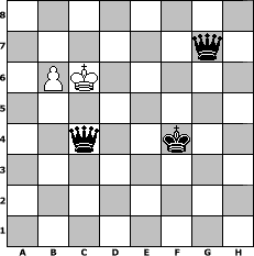 game notation in PGN-format [Event "Turnier zum Tag der deutschen Einheit 2015"] [Site "www.myChess.de"] [Date "2015.10.03"] [Round "1"] [White "borsti"] [Black "Master1"] [ECO "B12"] [WhitemyELO "1302"] [BlackmyELO "1290"] [Result "0-1"] [TimeControl "10/1728000"] [WhiteDays "140"] [BlackDays "068"] [MyChessNo "100630"] 1. e4 c6 2. d4 d5 3. e5 Bf5 4. Nc3 e6 5. Bd3 Ne7 6. Bg5 Bxd3 7. Qxd3 h6 8. Bh4 Qb6 9. Na4 Qb4+ 10. Nc3 Nd7 11. O-O-O c5 12. a3 Qb6 13. Qb5 Qxb5 14. Nxb5 Kd8 15. Ne2 g5 16. Bg3 Nf5 17. f3 Nxg3 18. Nxg3 a6 19. Nd6 Bxd6 20. exd6 cxd4 21. Rxd4 b5 22. b4 h5 23. h4 f6 24. Kd2 Nb6 25. Re1 Nc4+ 26. Kd3 Kd7 27. hxg5 fxg5 28. Kc3 Kxd6 29. Kb3 a5 30. Ne4+ Ke7 31. Nxg5 a4+ 32. Ka2 Ra6 33. Rh1 Kf6 34. Nh3 Rg8 35. Nf4 Ne3 36. c3 Nxg2 37. Nxh5+ Ke7 38. Rg1 Rg5 39. Rg4 Rxh5 40. R1xg2 Rc6 41. Kb2 Rh7 42. Rg8 Rb6 43. R2g7+ Rxg7 44. Rxg7+ Kf6 45. Rg4 Kf5 46. Kc2 e5 47. Kd3 Re6 48. Ke3 e4 49. Rg8 Rc6 50. Kd4 exf3 51. Rf8+ Kg4 52. Kd3 Kg3 53. Kd2 Re6 54. Kd3 f2 55. Kd4 Re4+ 56. Kxd5 Rf4 57. Rxf4 Kxf4 58. Kc6 f1=Q 59. Kc5 Qc4+ 60. Kb6 Qxc3 61. Kxb5 Qxa3 62. Ka5 Qb3 63. b5 a3 64. b6 a2 65. Ka6 a1=Q+ 66. Kb7 Qg7+ 67. Kc6 Qc4+ 0-1 position notation in FEN-format 8/6q1/1PK5/8/2q2k2/8/8/8 - - - 4 68 Captured white pieces: Captured black pieces: Click on a captured piece in order to display the desired move!