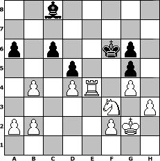 game notation in PGN-format [Event "Schach dem Nikolaus VII"] [Site "www.myChess.de"] [Date "2020.11.23"] [Round "1"] [White "martinus"] [Black "sprinterde"] [ECO "C01"] [WhitemyELO "1689"] [BlackmyELO "1721"] [Result "1-0"] [TimeControl "10/2592000"] [WhiteDays "30"] [BlackDays "30"] [MyChessNo "119971"] 1. e4 e6 2. d4 Nc6 3. Nf3 d5 4. e5 Nge7 5. c3 a6 6. Bd3 Ng6 7. O-O Be7 8. Be3 O-O 9. Nbd2 b5 10. h3 f5 11. exf6 Bxf6 12. Bxg6 hxg6 13. Re1 Qe8 14. Rc1 Qd7 15. Bg5 Ne7 16. Ne5 Bxe5 17. Rxe5 Nc6 18. Re3 Rf5 19. Nf3 Qf7 20. Qc2 Bb7 21. Re1 Re8 22. Qe2 Rf8 23. Rxe6 b4 24. Be7 Re8 25. Bxb4 Rxe6 26. Qxe6 Nxb4 27. cxb4 Qxe6 28. Rxe6 Kf7 29. Re3 c6 30. Ne5+ Kf6 31. Nd7+ Kf7 32. Ne5+ Kf6 33. g4 Rf4 34. Nf3 g5 35. Kg2 Re4 36. Rb3 g6 37. Re3 Bc8 38. Rxe4 1-0 position notation in FEN-format 2b5/8/p1p2kp1/3p2p1/1P1PR1P1/5N1P/PP3PK1/8 - - - 0 38 Captured white pieces: Captured black pieces: Click on a captured piece in order to display the desired move!