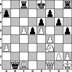 game notation in PGN-format [Event "Mal wieder spielen ?"] [Site "www.myChess.de"] [Date "2012.04.09"] [Round "1"] [White "Caligula"] [Black "espero"] [ECO "C00"] [WhitemyELO "1345"] [BlackmyELO "1651"] [Result "0-1"] [TimeControl "10/2592000"] [WhiteDays "85"] [BlackDays "80"] [MyChessNo "81029"] 1. e4 e6 2. f4 d5 3. e5 c5 4. Nf3 Nc6 5. Bb5 Bd7 6. Bxc6 bxc6 7. Nc3 Nh6 8. d3 Nf5 9. O-O h5 10. a3 g6 11. d4 cxd4 12. Nxd4 Qb6 13. Nce2 Nxd4 14. Nxd4 c5 15. Nf3 c4+ 16. Kh1 Ba4 17. Rb1 Bc5 18. b3 cxb3 19. cxb3 Bb5 20. b4 Bxf1 21. bxc5 Qxb1 22. Qxf1 Rc8 0-1 position notation in FEN-format 2r1k2r/p4p2/4p1p1/2PpP2p/5P2/P4N2/6PP/1qB2Q1K - k - 1 23 Captured white pieces: ![]() ![]() ![]() ![]() ![]() ![]() ![]() ![]() ![]() ![]() ![]() ![]() ![]() ![]() ![]() Captured black pieces: ![]() ![]() ![]() ![]() ![]() ![]() ![]() ![]() ![]() ![]() ![]() ![]() ![]() ![]() ![]() Click on a captured piece in order to display the desired move!
