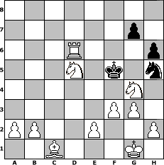 game notation in PGN-format [Event "Spa"] [Site "www.myChess.de"] [Date "2012.01.18"] [Round "1"] [White "lotchi"] [Black "Neo111"] [ECO "C68"] [WhitemyELO "1297"] [BlackmyELO "1195"] [Result "1-0"] [TimeControl "10/2592000"] [WhiteDays "30"] [BlackDays "30"] [MyChessNo "79258"] 1. e4 e5 2. Nf3 Nc6 3. Bb5 a6 4. Bxc6 dxc6 5. Nxe5 Qe7 6. d4 c5 7. c3 cxd4 8. cxd4 Nf6 9. Nc3 Bg4 10. f3 Be6 11. d5 Qd6 12. dxe6 fxe6 13. Qxd6 cxd6 14. Ng4 Nh5 15. O-O Rc8 16. Be3 Rc4 17. Rfc1 d5 18. exd5 h6 19. Ne4 Rxc1+ 20. Rxc1 exd5 21. Rc8+ Kf7 22. Rc7+ Kg8 23. Nc3 Kh7 24. Nxd5 Bd6 25. Rxb7 Kg6 26. Rb6 Rd8 27. Rxa6 Kf5 28. g3 Rc8 29. Rxd6 Rc1+ 30. Bxc1 1-0 position notation in FEN-format 8/6p1/3R3p/3N1k1n/6N1/5PP1/PP2P2P/2B3K1 - - - 0 30 Captured white pieces: Captured black pieces: Click on a captured piece in order to display the desired move!