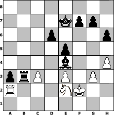 game notation in PGN-format [Event "8. Wikinger-Klubmeisterschaft"] [Site "www.myChess.de"] [Date "2012.08.01"] [Round "1"] [White "Seneca"] [Black "ElisabethPeters"] [ECO "A22"] [WhitemyELO "1428"] [BlackmyELO "1728"] [Result "0-1"] [TimeControl "10/1728000"] [WhiteDays "20"] [BlackDays "20"] [MyChessNo "83067"] 1. c4 e5 2. Nc3 Nf6 3. a3 h6 4. e4 Bc5 5. d3 O-O 6. Be2 a5 7. Nf3 d6 8. O-O Re8 9. Nd5 Nxd5 10. cxd5 c6 11. Be3 Bxe3 12. fxe3 Qb6 13. Qd2 Nd7 14. dxc6 bxc6 15. Kh1 Nc5 16. Qc2 Qb3 17. Rac1 Rb8 18. Qxb3 Rxb3 19. Rb1 Nxd3 20. Bxd3 Rxd3 21. Rfe1 Ba6 22. Rbc1 c5 23. Rc3 Rb8 24. Rxd3 Bxd3 25. Rd1 c4 26. Rd2 Kf8 27. g3 Bxe4 28. Kg2 Rb3 29. Kf2 a4 30. h4 Ke7 31. Ng1 c3 32. bxc3 Rxa3 33. Ne2 Rb3 34. Ra2 a3 0-1 position notation in FEN-format 8/4kpp1/3p3p/4p3/4b2P/prP1P1P1/R3NK2/8 - - - 0 35 Captured white pieces: Captured black pieces: Click on a captured piece in order to display the desired move!