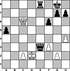 game notation in PGN-format [Event "September 2017"] [Site "www.myChess.de"] [Date "2017.08.31"] [Round "1"] [White "borsti"] [Black "Naunhofer"] [ECO "A45"] [WhitemyELO "1172"] [BlackmyELO "1603"] [Result "0-1"] [TimeControl "10/1728000"] [WhiteDays "80"] [BlackDays "80"] [MyChessNo "109390"] 1. d4 Nf6 2. Bf4 e6 3. e3 d5 4. Bb5+ c6 5. Ba4 Bd6 6. Nh3 Bxf4 7. Nxf4 O-O 8. Nc3 Nbd7 9. a3 e5 10. dxe5 Nxe5 11. Qd4 Nc4 12. Bb3 Nd6 13. O-O-O Nfe4 14. Nxe4 Nxe4 15. Rhf1 Be6 16. Nh5 f6 17. Nf4 Bf7 18. f3 Ng5 19. h4 Ne6 20. Qb4 Qc7 21. Nxe6 Bxe6 22. Rfe1 a5 23. Qf4 Qf7 24. e4 dxe4 25. Bxe6 Qxe6 26. Rxe4 Qa2 27. Rd7 Qa1+ 28. Kd2 Rad8 29. Qc7 Rxd7+ 30. Qxd7 Qxb2 31. Re8 Qxa3 32. Qxb7 Rxe8 33. Qxc6 Qe3+ 0-1 position notation in FEN-format 4r1k1/6pp/2Q2p2/p7/7P/4qP2/2PK2P1/8 - - - 1 34 Captured white pieces: Captured black pieces: Click on a captured piece in order to display the desired move!