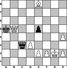 game notation in PGN-format [Event "Festive 23"] [Site "www.myChess.de"] [Date "2023.12.24"] [Round "1"] [White "wolni55"] [Black "Andreas1954"] [ECO "C41"] [WhitemyELO "1369"] [BlackmyELO "1235"] [Result "1-0"] [TimeControl "10/2592000"] [WhiteDays "30"] [BlackDays "30"] [MyChessNo "131288"] 1. e4 e5 2. Nf3 d6 3. Bc4 Bg4 4. d3 Bxf3 5. Qxf3 Nf6 6. Bg5 h6 7. Bh4 g5 8. Bg3 g4 9. Qf5 Nbd7 10. Nc3 c6 11. a3 h5 12. Bh4 b5 13. Ba2 Be7 14. Qg5 Rg8 15. Qd2 Nh7 16. g3 Bxh4 17. gxh4 Qb6 18. Qh6 Nhf6 19. Bb3 Rg6 20. Qd2 a5 21. a4 bxa4 22. Rxa4 Nc5 23. Rc4 a4 24. Nxa4 Nxa4 25. Rb4 Qc5 26. Bxa4 Ra6 27. Rc4 Qa7 28. Qb4 d5 29. exd5 Nxd5 30. Qb3 Kf8 31. O-O c5 32. Re1 Rgb6 33. Qa2 Nb4 34. Qb3 Nd5 35. Qa3 Rb4 36. Rxb4 cxb4 37. Qb3 Nb6 38. Bb5 Ra1 39. Rxa1 Qxa1+ 40. Kg2 Qa5 41. Bc6 Qc5 42. Be4 Qb5 43. c3 f6 44. Bg6 Qd7 45. Qxb4+ Kg7 46. Bxh5 Qd5+ 47. Kg1 Nd7 48. Qxg4+ Kf8 49. Qg6 Ke7 50. Qh7+ Kd6 51. Be8 Nf8 52. Qg7 Ne6 53. Qd7+ Kc5 54. Qc8+ Kb6 55. Qb8+ Qb7 56. Qd6+ Ka7 57. Qxe6 Qxb2 58. Qxf6 Qc1+ 59. Kg2 Qxc3 60. Qe7+ Kb6 61. Qd8+ Ka6 62. Qa8+ Kb6 63. Qb8+ Ka5 64. Qb5# 1-0 position notation in FEN-format 4B3/8/8/kQ2p3/7P/2qP4/4PPKP/8 - - - 9 64 Captured white pieces: Captured black pieces: Click on a captured piece in order to display the desired move!