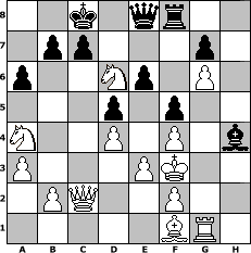 game notation in PGN-format [Event "Sommerschach 2009"] [Site "www.myChess.de"] [Date "2009.06.09"] [Round "2"] [White "muellerh"] [Black "Andylein1989"] [ECO "A03"] [WhitemyELO "1565"] [BlackmyELO "1568"] [Result "1-0"] [TimeControl "10/864000"] [WhiteDays "09"] [BlackDays "07"] [MyChessNo "56482"] 1. f4 d5 2. Nf3 Nc6 3. d4 Bf5 4. Nc3 Nf6 5. h3 h5 6. e3 e6 7. Rg1 Ne4 8. Bd2 Be7 9. g4 hxg4 10. hxg4 Bg6 11. g5 Nxd2 12. Qxd2 Nb4 13. Rc1 Qd7 14. a3 Nxc2+ 15. Rxc2 Bxc2 16. Qxc2 a6 17. Ne5 Qd8 18. g6 f5 19. Nf7 Qd7 20. Nxh8 O-O-O 21. Nf7 Rf8 22. Na4 Bh4+ 23. Ke2 Qb5+ 24. Kf3 Qe8 25. Nd6+ 1-0 position notation in FEN-format 2k1qr2/1pp3p1/p2Np1P1/3p1p2/N2P1P1b/P3PK2/1PQ2P2/5BR1 - - - 10 25 Captured white pieces: Captured black pieces: Click on a captured piece in order to display the desired move!