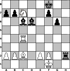 game notation in PGN-format [Event "Gewitter im August"] [Site "www.myChess.de"] [Date "2006.08.13"] [Round "1"] [White "Andreas"] [Black "koding"] [ECO "C02"] [WhitemyELO "1682"] [BlackmyELO "1993"] [Result "0-1"] [TimeControl "10/864000"] [WhiteDays "30"] [BlackDays "31"] [MyChessNo "27635"] 1. e4 e6 2. d4 d5 3. e5 c5 4. c3 Nc6 5. Nf3 cxd4 6. cxd4 Be7 7. Bd3 Bd7 8. O-O Qb6 9. Nc3 Nxd4 10. Nxd4 Qxd4 11. Nb5 Qxe5 12. Re1 Qb8 13. g3 e5 14. Qc2 Bc6 15. Rxe5 Qxe5 16. Bf4 Qf6 17. Nc7+ Kf8 18. Nxa8 h5 19. Re1 h4 20. Be5 Qf3 21. Re3 Qg4 22. Bf5 Qc4 23. Qxc4 dxc4 24. Nc7 hxg3 25. Bxg3 Nf6 26. Kf1 g6 27. Bc2 Ng4 28. Rc3 Nxh2+ 29. Bxh2 Rxh2 30. Rxc4 Bd6 0-1 position notation in FEN-format 5k2/ppN2p2/2bb2p1/8/2R5/8/PPB1PP1r/5K2 - - - 1 31 Captured white pieces: Captured black pieces: Click on a captured piece in order to display the desired move!