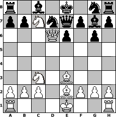 game notation in PGN-format [Event "Superzelle"] [Site "www.myChess.de"] [Date "2009.03.31"] [Round "1"] [White "Ziegert"] [Black "Jonas84"] [ECO "B41"] [WhitemyELO "1635"] [BlackmyELO "1359"] [Result "1-0"] [TimeControl "10/2592000"] [WhiteDays "27"] [BlackDays "30"] [MyChessNo "54406"] 1. e4 c5 2. Nf3 e6 3. d4 d5 4. exd5 Qxd5 5. Nc3 Qd8 6. Be3 cxd4 7. Nxd4 g6 8. Be2 Bg7 9. Ndb5 Nd7 10. Qd6 Qe7 11. Nc7+ 1-0 position notation in FEN-format r1b1k1nr/ppNnqpbp/3Qp1p1/8/8/2N1B3/PPP1BPPP/R3K2R - KQkq - 7 11 Captured white pieces: Captured black pieces: Click on a captured piece in order to display the desired move!