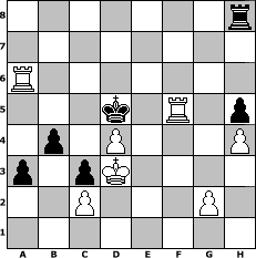 game notation in PGN-format [Event "Fr"] [Site "www.myChess.de"] [Date "2016.01.30"] [Round "1"] [White "paul"] [Black "Haneken"] [ECO "A40"] [WhitemyELO "1335"] [BlackmyELO "1082"] [Result "1-0"] [TimeControl "10/2592000"] [WhiteDays "027"] [BlackDays "111"] [MyChessNo "102295"] 1. d4 Nc6 2. Nf3 d5 3. e3 e6 4. Nc3 Bb4 5. Bb5 Bd7 6. a3 Bxc3+ 7. bxc3 Na5 8. Bxd7+ Qxd7 9. Bd2 Nc4 10. Ne5 Nb2 11. Nxd7 Nxd1 12. Rxd1 Kxd7 13. f3 a5 14. a4 Ra6 15. Rf1 Nf6 16. f4 Ne4 17. f5 h5 18. fxe6+ Kxe6 19. Rb1 b6 20. h4 Ng3 21. Rf3 Ne4 22. Ke2 g6 23. Kd3 c6 24. c4 Nxd2 25. Kxd2 dxc4 26. Rbf1 f5 27. Rf4 b5 28. axb5 cxb5 29. e4 b4 30. exf5+ gxf5 31. Rxf5 c3+ 32. Kd3 a4 33. Rf6+ Kd5 34. Rxa6 a3 35. Rf5# 1-0 position notation in FEN-format 7r/8/R7/3k1R1p/1p1P3P/p1pK4/2P3P1/8 - - - 1 35 Captured white pieces: Captured black pieces: Click on a captured piece in order to display the desired move!