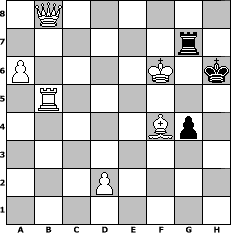 game notation in PGN-format [Event "Herbst 2022"] [Site "www.myChess.de"] [Date "2022.10.06"] [Round "1"] [White "Achimkogge"] [Black "Lohl"] [ECO "D00"] [WhitemyELO "1309"] [BlackmyELO "1412"] [Result "1-0"] [TimeControl "10/2592000"] [WhiteDays "204"] [BlackDays "210"] [MyChessNo "127412"] 1. d4 d5 2. c3 Nf6 3. f3 e6 4. Bf4 Nc6 5. e3 a6 6. Bd3 Bd6 7. Bg5 h6 8. Bh4 e5 9. g4 exd4 10. cxd4 Bb4+ 11. Kf1 Qe7 12. a3 Ba5 13. b4 Bb6 14. Bf2 Ne4 15. fxe4 dxe4 16. Bc4 O-O 17. h4 Rd8 18. d5 Ne5 19. Be2 Qf6 20. Nc3 Bxe3 21. Nxe4 Qf4 22. Bf3 Nxg4 23. Nh3 Nh2+ 24. Kg2 Bxh3+ 25. Kxh3 Nxf3 26. Bxe3 Qxh4+ 27. Kg2 Qxe4 28. Qxf3 Qg6+ 29. Kf2 Qc2+ 30. Kg3 Qg6+ 31. Qg4 Qd6+ 32. Bf4 Qxd5 33. Raf1 h5 34. Qxh5 Qd3+ 35. Rf3 Qg6+ 36. Bg5 Qxh5 37. Rxh5 Rd5 38. Kg4 Re8 39. Rf4 f5+ 40. Rxf5 Rxf5 41. Kxf5 Rf8+ 42. Ke6 Re8+ 43. Be7 c6 44. a4 b6 45. Rf5 g6 46. Rg5 Kh7 47. Kf7 Rg8 48. Bf6 a5 49. bxa5 c5 50. axb6 c4 51. b7 Rb8 52. Rb5 Kh6 53. Be5 Rd8 54. Bf6 Rb8 55. a5 c3 56. Bxc3 g5 57. Be5 Rd8 58. a6 Rd7+ 59. Kf6 g4 60. b8=Q Rg7 61. Bf4+ 1-0 position notation in FEN-format 1Q6/6r1/P4K1k/1R6/5Bp1/8/3P4/8 - - - 2 61 Captured white pieces: Captured black pieces: Click on a captured piece in order to display the desired move!