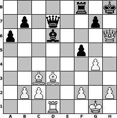 game notation in PGN-format [Event "Sweschnikow II"] [Site "www.myChess.de"] [Date "2012.04.28"] [Round "2"] [White "brucybabe"] [Black "reisinger"] [ECO "B33"] [WhitemyELO "1649"] [BlackmyELO "1454"] [Result "1-0"] [TimeControl "10/1728000"] [WhiteDays "20"] [BlackDays "20"] [MyChessNo "81329"] 1. e4 c5 2. Nf3 Nc6 3. d4 cxd4 4. Nxd4 Nf6 5. Nc3 e5 6. Ndb5 d6 7. a4 a6 8. Na3 Be7 9. Nc4 O-O 10. Be2 Be6 11. Be3 Ng4 12. Bxg4 Bxc4 13. Be2 Be6 14. Qd2 Nb4 15. Rd1 Rc8 16. Bd3 d5 17. exd5 Nxd5 18. Nxd5 Bxd5 19. Qe2 Qa5+ 20. Bd2 Qxa4 21. Qxe5 Qd7 22. O-O f5 23. Bc3 Bd6 24. Qxd5+ Kh8 25. Qf3 Rce8 26. Rfe1 Qf7 27. Rxe8 Qxe8 28. Qh3 Qd7 29. g4 h6 30. Qxh6+ 1-0 position notation in FEN-format 5r1k/1p1q2p1/p2b3Q/5p2/6P1/2BB4/1PP2P1P/3R2K1 - - - 0 30 Captured white pieces: Captured black pieces: Click on a captured piece in order to display the desired move!