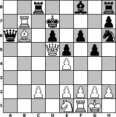 game notation in PGN-format [Event "Lied der Nibelungen"] [Site "www.myChess.de"] [Date "2021.06.18"] [Round "1"] [White "MiFie"] [Black "Haneken"] [ECO "C41"] [WhitemyELO "1034"] [BlackmyELO "1131"] [Result "1-0"] [TimeControl "10/2592000"] [WhiteDays "80"] [BlackDays "85"] [MyChessNo "122436"] 1. e4 e5 2. Nf3 d6 3. Nc3 Be6 4. Bb5+ c6 5. Ba4 Qa5 6. O-O Na6 7. d3 b5 8. Bb3 b4 9. Ba4 bxc3 10. Bxc6+ Kd8 11. Bg5+ f6 12. Be3 Rc8 13. Bb7 Rc7 14. Bxa6 cxb2 15. Rb1 Qxa2 16. Bc4 Qa5 17. Rxb2 Bxc4 18. Rb8+ Ke7 19. dxc4 g5 20. Rb5 Qa6 21. Qd3 Nh6 22. Qd5 Qa2 23. Ne1 Rxc4 24. Rb7+ Kd8 25. Bxa7 Qa6 26. Rb8+ Rc8 27. Bb6+ Kd7 28. Rb7+ 1-0 position notation in FEN-format 2r2b1r/1R1k3p/qB1p1p1n/3Qp1p1/4P3/8/2P1PPPP/4NRK1 - - - 6 28 Captured white pieces: Captured black pieces: Click on a captured piece in order to display the desired move!