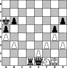 game notation in PGN-format [Event "Latvija"] [Site "www.myChess.de"] [Date "2017.07.03"] [Round "1"] [White "borsti"] [Black "faustballer"] [ECO "C40"] [WhitemyELO "1211"] [BlackmyELO "1501"] [Result "0-1"] [TimeControl "10/2592000"] [WhiteDays "150"] [BlackDays "150"] [MyChessNo "108773"] 1. e4 e5 2. Nf3 f5 3. exf5 d6 4. d4 e4 5. Ng5 Bxf5 6. Nc3 h6 7. Ngxe4 Qe7 8. f3 a6 9. Bc4 Nf6 10. O-O Nc6 11. Be3 O-O-O 12. d5 Ne5 13. Bb3 Nxe4 14. Nxe4 Bd7 15. Qd4 b6 16. a4 a5 17. c4 Kb7 18. Bc2 Ra8 19. h3 c5 20. Qc3 g5 21. g4 Bg7 22. Qe1 Nxc4 23. Rb1 Nxe3 24. Qxe3 Bd4 25. Qxd4 cxd4 26. Rfe1 Qf8 27. Kg2 Qg7 28. Nxd6+ Ka7 29. b3 Rhf8 30. Bf5 Bxf5 31. Nxf5 Qh8 32. Re7+ Ka6 33. Rd1 Rfe8 34. d6 Rad8 35. Rxd4 Rxe7 36. Nxe7 Qxd4 37. Nf5 Qd2+ 38. Kg1 Rxd6 39. Ng3 Qe1+ 40. Nf1 Rd1 0-1 position notation in FEN-format 8/8/kp5p/p5p1/P5P1/1P3P1P/4P3/3rqNK1 - - - 4 41 Captured white pieces: Captured black pieces: Click on a captured piece in order to display the desired move!