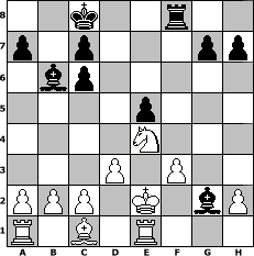 game notation in PGN-format [Event "Auf zum Gegenangriff mit Traxler !"] [Site "www.myChess.de"] [Date "2019.07.03"] [Round "1"] [White "martinus"] [Black "sprinterde"] [ECO "C57"] [WhitemyELO "1780"] [BlackmyELO "1761"] [Result "1-0"] [TimeControl "10/1728000"] [WhiteDays "14"] [BlackDays "40"] [MyChessNo "115288"] 1. e4 e5 2. Nf3 Nc6 3. Bc4 Nf6 4. Ng5 Bc5 5. Nxf7 Qe7 6. Nxh8 Bxf2+ 7. Kf1 Qf8 8. Nf7 d5 9. Bxd5 Nxd5 10. exd5 Qxf7 11. dxc6 Bb6+ 12. Qf3 Qxf3+ 13. gxf3 Bh3+ 14. Ke2 bxc6 15. Nc3 O-O-O 16. d3 Rf8 17. Ne4 Bg2 18. Re1 1-0 position notation in FEN-format 2k2r2/p1p3pp/1bp5/4p3/4N3/3P1P2/PPP1K1bP/R1B1R3 - - - 4 18 Captured white pieces: Captured black pieces: Click on a captured piece in order to display the desired move!