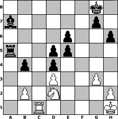 game notation in PGN-format [Event "11er2"] [Site "www.myChess.de"] [Date "2012.06.01"] [Round "1"] [White "sprinterde"] [Black "espero"] [ECO "C00"] [WhitemyELO "1736"] [BlackmyELO "1681"] [Result "0-1"] [TimeControl "10/3456000"] [WhiteDays "152"] [BlackDays "114"] [MyChessNo "81953"] 1. e4 e6 2. f4 d5 3. e5 c5 4. Nf3 Nc6 5. Bb5 Bd7 6. O-O Nxe5 7. fxe5 Bxb5 8. d3 Ne7 9. Nc3 Bc6 10. Bg5 h6 11. Bh4 Qc7 12. Bxe7 Bxe7 13. Qe2 O-O 14. d4 b5 15. a3 Qb6 16. Qd3 a5 17. Ne2 b4 18. axb4 axb4 19. Qd2 Bb5 20. Rxa8 Rxa8 21. Rb1 Bxe2 22. Qxe2 cxd4 23. Kh1 Bc5 24. Qd3 Qa6 25. Rd1 Qxd3 26. cxd3 f6 27. Rc1 Ra5 28. Nd2 Ba7 29. g3 fxe5 0-1 position notation in FEN-format 6k1/b5p1/4p2p/r2pp3/1p1p4/3P2P1/1P1N3P/2R4K - - - 0 30 Captured white pieces: Captured black pieces: Click on a captured piece in order to display the desired move!