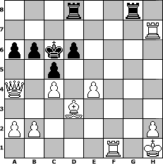 game notation in PGN-format [Event "Hitzeschlacht"] [Site "www.myChess.de"] [Date "2009.08.13"] [Round "1"] [White "Zoidberg"] [Black "reisender"] [ECO "A40"] [WhitemyELO "1823"] [BlackmyELO "1342"] [Result "1-0"] [TimeControl "10/864000"] [WhiteDays "09"] [BlackDays "09"] [MyChessNo "58262"] 1. d4 g6 2. c4 Nf6 3. Nc3 Bg7 4. e4 d6 5. f3 b6 6. Be3 Bd7 7. Qd2 c6 8. Bd3 e5 9. Nge2 Nh5 10. O-O exd4 11. Nxd4 c5 12. Nde2 O-O 13. Nd5 Nc6 14. Bg5 f6 15. Be3 Be6 16. g4 g5 17. gxh5 Bf7 18. Ng3 h6 19. f4 Ne7 20. Nxe7+ Qxe7 21. Nf5 Qd8 22. fxg5 fxg5 23. Nxg7 Kxg7 24. Qc3+ Kg8 25. Rf6 Bxh5 26. Rxh6 Kf7 27. Rf1+ Ke7 28. Bxg5+ Kd7 29. Bxd8 Rg8+ 30. Kh1 Raxd8 31. Rxh5 Kc7 32. Rh7+ Kc6 33. Qb3 a6 34. Qa4+ 1-0 position notation in FEN-format 3r2r1/7R/ppkp4/2p5/Q1P1P3/3B4/PP5P/5R1K - - - 1 34 Captured white pieces: Captured black pieces: Click on a captured piece in order to display the desired move!