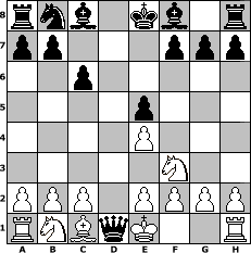 game notation in PGN-format [Event "Auf Die WM!!!!!!!!!!!! (2010 werden wir Meister)"] [Site "www.myChess.de"] [Date "2006.07.21"] [Round "1"] [White "Martin2008"] [Black "JerryWho"] [ECO "B10"] [WhitemyELO "1429"] [BlackmyELO "1587"] [Result "0-1"] [TimeControl "10/2592000"] [WhiteDays "00"] [BlackDays "24"] [MyChessNo "27065"] 1. e4 c6 2. Bc4 d5 3. Bd3 dxe4 4. Bxe4 Nf6 5. d3 e5 6. Nf3 Nxe4 7. dxe4 Qxd1+ 0-1 position notation in FEN-format rnb1kb1r/pp3ppp/2p5/4p3/4P3/5N2/PPP1PPPP/RNBqK2R - KQkq - 0 8 Captured white pieces: Captured black pieces: Click on a captured piece in order to display the desired move!