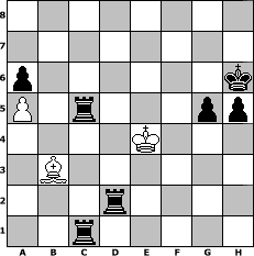 game notation in PGN-format [Event "Chess Cafe Open 2016 1"] [Site "www.myChess.de"] [Date "2016.11.02"] [Round "1"] [White "shan"] [Black "Knight"] [ECO "C57"] [WhitemyELO "1573"] [BlackmyELO "1279"] [Result "0-1"] [TimeControl "10/2592000"] [WhiteDays "30"] [BlackDays "30"] [MyChessNo "105503"] 1. e4 e5 2. Nf3 Nc6 3. Bc4 Nf6 4. Ng5 d5 5. Bd3 d4 6. c3 Bg4 7. Nf3 Bc5 8. b4 Bb6 9. h3 Bh5 10. Qb3 dxc3 11. Qxc3 Bxf3 12. gxf3 O-O 13. Na3 a6 14. Nc4 Ba7 15. Nxe5 Nxe5 16. Ke2 Bxf2 17. Qxe5 Qd4 18. Bb2 Qxe5 19. Bxe5 Bb6 20. Rhc1 c6 21. a4 Nd7 22. a5 Ba7 23. Bc3 b5 24. e5 Rfe8 25. f4 f6 26. Kd1 fxe5 27. fxe5 Nxe5 28. Bxe5 Rad8 29. Be4 Rxe5 30. Bxc6 Rh5 31. Rc5 Bxc5 32. bxc5 Rxh3 33. Kc2 Rh2 34. Rc1 Rdxd2+ 35. Kb3 Rb2+ 36. Kc3 b4+ 37. Kd4 Rbd2+ 38. Ke4 b3 39. Ba4 b2 40. Rb1 Kf7 41. Bb3+ Kg6 42. c6 Rd8 43. Bd1 h5 44. Bb3 Rhd2 45. Ba2 Kh6 46. Bf7 Rc8 47. Bd5 g5 48. Bf7 Rxc6 49. Bd5 Rc5 50. Bb3 Rdc1 51. Rxc1 bxc1=Q 0-1 position notation in FEN-format 8/8/p6k/P1r3pp/4K3/1B6/3r4/2r5 - - - 0 52 Captured white pieces: Captured black pieces: Click on a captured piece in order to display the desired move!