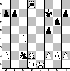 game notation in PGN-format [Event "Faires Schach"] [Site "www.myChess.de"] [Date "2007.03.25"] [Round "1"] [White "AlbertoAveiro"] [Black "Greenhorn"] [ECO "B54"] [WhitemyELO "1521"] [BlackmyELO "1678"] [Result "1/2-1/2"] [TimeControl "10/3456000"] [WhiteDays "081"] [BlackDays "151"] [MyChessNo "33769"] 1. e4 c5 2. Nf3 d6 3. d4 cxd4 4. Nxd4 e5 5. Bb5+ Bd7 6. Bxd7+ Nxd7 7. Nf3 Ngf6 8. Nc3 Nc5 9. Qe2 Be7 10. O-O O-O 11. Nd2 d5 12. exd5 Nxd5 13. Qxe5 Nb4 14. Nde4 f6 15. Qh5 Nxe4 16. Nxe4 Nxc2 17. Rb1 f5 18. Nc3 Rc8 19. Rd1 Qb6 20. Nd5 Qe6 21. Nxe7+ Qxe7 22. b3 Rc6 23. Bb2 Na3 24. Rbc1 Rxc1 25. Bxc1 Nc2 26. Qf3 Re8 27. Bd2 g6 28. Qc3 Qe4 29. Qc4+ Qxc4 30. bxc4 Rd8 31. Kf1 Kf7 32. Ke2 Nd4+ 33. Ke1 Nc2+ 1/2-1/2 position notation in FEN-format 3r4/pp3k1p/6p1/5p2/2P5/8/P1nB1PPP/3RK3 - - - 7 34 Captured white pieces: Captured black pieces: Click on a captured piece in order to display the desired move!