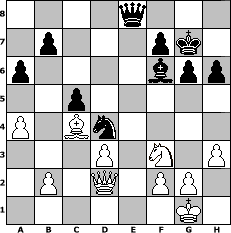game notation in PGN-format [Event "Dabei ist alles 9"] [Site "www.myChess.de"] [Date "2010.03.22"] [Round "1"] [White "UPS"] [Black "Naunhofer"] [ECO "B23"] [WhitemyELO "1655"] [BlackmyELO "1574"] [Result "1/2-1/2"] [TimeControl "10/864000"] [WhiteDays "07"] [BlackDays "10"] [MyChessNo "64223"] 1. e4 c5 2. Nc3 a6 3. a4 Nc6 4. Bc4 e6 5. Nf3 Nf6 6. d3 Be7 7. O-O d5 8. exd5 exd5 9. Ba2 O-O 10. Bg5 d4 11. Bxf6 Bxf6 12. Ne4 Bg4 13. h3 Bh5 14. Ng3 Bg6 15. Re1 Qd7 16. Qd2 h6 17. Re2 Rfe8 18. Rae1 Kf8 19. Bc4 Rab8 20. Qf4 Rxe2 21. Rxe2 Re8 22. Ne4 Bxe4 23. Rxe4 Rxe4 24. Qxe4 Qe7 25. Qd5 Nb4 26. Qf5 g6 27. Qf4 Kg7 28. Qd2 Qe8 29. c3 Nc6 30. cxd4 Nxd4 1/2-1/2 position notation in FEN-format 4q3/1p3pk1/p4bpp/2p5/P1Bn4/3P1N1P/1P1Q1PP1/6K1 - - - 0 31 Captured white pieces: Captured black pieces: Click on a captured piece in order to display the desired move!