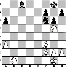 game notation in PGN-format [Event "Sibirk"] [Site "www.myChess.de"] [Date "2004.12.27"] [Round "2"] [White "OwainGwynedd"] [Black "Knight"] [ECO "A00"] [WhitemyELO "1225"] [BlackmyELO "1149"] [Result "1-0"] [TimeControl "10/2592000"] [WhiteDays "091"] [BlackDays "117"] [MyChessNo "9073"] 1. Nc3 c5 2. d4 cxd4 3. Qxd4 Nc6 4. Qh4 Nf6 5. Qg5 e6 6. Qd2 Bb4 7. Qd3 d5 8. e3 d4 9. exd4 Nxd4 10. a3 Bxc3+ 11. Qxc3 Ne4 12. Qc4 O-O 13. f3 b5 14. Qd3 Nf6 15. c3 Bb7 16. cxd4 a6 17. Be2 Rc8 18. Be3 Re8 19. Nh3 Nd5 20. Bf2 Re7 21. f4 Rec7 22. O-O b4 23. f5 exf5 24. Qxf5 Rc2 25. Bd1 Rc1 26. Bg4 Rxf1+ 27. Kxf1 bxa3 28. bxa3 Nc3 29. Rc1 Qe8 30. Rc2 Qc6 31. Bf3 Qc7 32. d5 g6 33. Qf6 Qc4+ 34. Kg1 Nxd5 35. Rxc4 Nxf6 36. Rxc8+ Bxc8 37. Ng5 1-0 position notation in FEN-format 2b3k1/5p1p/p4np1/6N1/8/P4B2/5BPP/1N4K1 - - - 1 37 Captured white pieces: Captured black pieces: Click on a captured piece in order to display the desired move!
