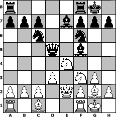 game notation in PGN-format [Event "3. gro"] [Site "www.myChess.de"] [Date "2006.09.17"] [Round "1"] [Board "2"] [White "Robert"] [Black "PluckyDuck"] [ECO "C40"] [WhitemyELO "1617"] [BlackmyELO "1716"] [Result "1-0"] [TimeControl "10/2592000"] [WhiteDays "30"] [BlackDays "00"] [MyChessNo "28627"] 1. e4 e5 2. Nf3 d5 3. exd5 e4 4. Qe2 Nf6 5. Nc3 Be7 6. Nxe4 O-O 7. d3 Qxd5 8. g3 Nc6 9. Bg2 Bf5 10. O-O 1-0 position notation in FEN-format r4rk1/ppp1bppp/2n2n2/3q1b2/4N3/3P1NP1/PPP1QPBP/R1B2RK1 - - - 4 10 Captured white pieces: Captured black pieces: Click on a captured piece in order to display the desired move!