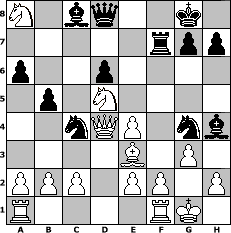 game notation in PGN-format [Event "Schach-Romantik mit Philidor"] [Site "www.myChess.de"] [Date "2009.01.14"] [Round "2"] [White "Jolilein"] [Black "Chaos"] [ECO "C41"] [WhitemyELO "1723"] [BlackmyELO "1680"] [Result "1-0"] [TimeControl "10/2592000"] [WhiteDays "60"] [BlackDays "43"] [MyChessNo "51644"] 1. e4 e5 2. Nf3 d6 3. d4 Nd7 4. Bc4 Ngf6 5. O-O Be7 6. Ng5 O-O 7. Nc3 a6 8. Bxf7+ Rxf7 9. Ne6 Qe8 10. Nxc7 Qd8 11. Nxa8 b5 12. dxe5 Nxe5 13. Be3 Nc4 14. Qd4 Ng4 15. Nd5 Bh4 16. g3 1-0 position notation in FEN-format N1bq2k1/5rpp/p2p4/1p1N4/2nQP1nb/4B1P1/PPP1PP1P/R4RK1 - - - 0 16 Captured white pieces: Captured black pieces: Click on a captured piece in order to display the desired move!