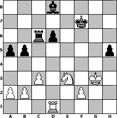 game notation in PGN-format [Event "Svetlana Open 2012"] [Site "www.myChess.de"] [Date "2012.03.22"] [Round "1"] [White "Svetlana"] [Black "Erich"] [ECO "B53"] [WhitemyELO "1761"] [BlackmyELO "2035"] [Result "1/2-1/2"] [TimeControl "10/2592000"] [WhiteDays "28"] [BlackDays "30"] [MyChessNo "80734"] 1. e4 c5 2. Nf3 d6 3. d4 cxd4 4. Bb5+ Bd7 5. Bxd7+ Nxd7 6. Qxd4 Ngf6 7. Nc3 e5 8. Qd3 Nc5 9. Qe2 Qb6 10. O-O Be7 11. Bg5 Ncd7 12. Rab1 h6 13. Bxf6 Nxf6 14. Rfd1 O-O 15. Nd2 Qc6 16. Qd3 Rac8 17. Nf1 g6 18. Ne3 Kg7 19. g3 a6 20. h4 Qd7 21. Rd2 Rc6 22. Ncd5 Nxd5 23. Qxd5 Qc8 24. Rbd1 f5 25. exf5 gxf5 26. Qd3 Bd8 27. Nd5 f4 28. gxf4 Bxh4 29. Kh2 Qf5 30. Qh3 Qxh3+ 31. Kxh3 Bd8 32. c3 a5 33. Kg3 b5 34. Re2 h5 35. Re4 Rf5 36. Ne3 exf4+ 37. Rxf4 Rxf4 38. Kxf4 Kf7 39. Kg3 1/2-1/2 position notation in FEN-format 3b4/5k2/2rp4/pp5p/8/2P1N1K1/PP3P2/3R4 - - - 2 39 Captured white pieces: ![]() ![]() ![]() ![]() ![]() ![]() ![]() ![]() ![]() ![]() ![]() ![]() ![]() ![]() ![]() Captured black pieces: ![]() ![]() ![]() ![]() ![]() ![]() ![]() ![]() ![]() ![]() ![]() ![]() ![]() ![]() ![]() Click on a captured piece in order to display the desired move!