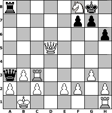 game notation in PGN-format [Event "Sweschnikow III"] [Site "www.myChess.de"] [Date "2012.09.05"] [Round "1"] [White "sprinterde"] [Black "Naunhofer"] [ECO "B33"] [WhitemyELO "1707"] [BlackmyELO "1627"] [Result "1-0"] [TimeControl "10/1728000"] [WhiteDays "20"] [BlackDays "20"] [MyChessNo "83745"] 1. e4 c5 2. Nf3 Nc6 3. d4 cxd4 4. Nxd4 Nf6 5. Nc3 e5 6. Nxc6 bxc6 7. Bg5 Bb4 8. Qf3 Be7 9. Bc4 h6 10. Bxf6 Bxf6 11. O-O-O a5 12. Na4 Rb8 13. g3 Bg5+ 14. Kb1 Qf6 15. Qc3 Rb4 16. b3 Qe7 17. Nb2 O-O 18. Nd3 Rb8 19. Qxa5 d5 20. exd5 cxd5 21. Bxd5 Be6 22. Nxe5 Bxd5 23. Qxd5 Bf6 24. Nd7 Bc3 25. Rd3 Qa3 26. Rxc3 Ra8 27. Nxf8 1-0 position notation in FEN-format r4Nk1/5pp1/7p/3Q4/8/qPR3P1/P1P1PP1P/1K5R - - - 0 27 Captured white pieces: Captured black pieces: Click on a captured piece in order to display the desired move!