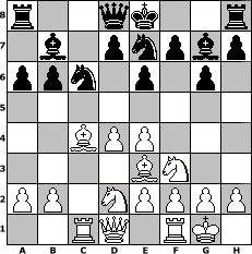 game notation in PGN-format [Event "Fr"] [Site "www.myChess.de"] [Date "2008.02.07"] [Round "1"] [White "Vahl1"] [Black "UPS"] [ECO "B30"] [WhitemyELO "1650"] [BlackmyELO "1591"] [Result "0-1"] [TimeControl "10/2592000"] [WhiteDays "00"] [BlackDays "56"] [MyChessNo "42398"] 1. e4 c5 2. Nf3 Nc6 3. Bb5 Qc7 4. O-O g6 5. c3 a6 6. Bc4 e6 7. d3 Bg7 8. Be3 b6 9. Nbd2 Nge7 10. d4 cxd4 11. cxd4 Bb7 12. Rc1 Qd8 0-1 position notation in FEN-format r2qk2r/1b1pnpbp/ppn1p1p1/8/2BPP3/4BN2/PP1NPPPP/2RQ1RK1 - kq - 3 13 Captured white pieces: ![]() ![]() ![]() ![]() ![]() ![]() ![]() ![]() ![]() ![]() ![]() ![]() ![]() ![]() ![]() Captured black pieces: ![]() ![]() ![]() ![]() ![]() ![]() ![]() ![]() ![]() ![]() ![]() ![]() ![]() ![]() ![]() Click on a captured piece in order to display the desired move!
