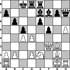 | game notation in PGN-format [Event "Zug um Zug gegen Fr"] [Site "www.myChess.de"] [Date "2010.05.04"] [Round "1"] [White "BobbyF4"] [Black "leitsgeheier"] [ECO "D10"] [WhitemyELO "1521"] [BlackmyELO "1577"] [Result "1-0"] [TimeControl "10/2592000"] [WhiteDays "92"] [BlackDays "73"] [MyChessNo "65314"] 1. d4 d5 2. c4 c6 3. e4 dxe4 4. Nc3 Nf6 5. f3 Bf5 6. g4 Bg6 7. f4 h6 8. Bg2 e6 9. g5 hxg5 10. fxg5 Bh5 11. Nge2 Ng4 12. h3 Nf6 13. gxf6 Qxf6 14. Nxe4 Qh4+ 15. Nf2 Bd6 16. Kf1 Nd7 17. Qd3 O-O-O 18. Be3 Nf6 19. Nc3 Rhe8 20. Nce4 Nxe4 21. Nxe4 Be7 22. Bf2 Qf4 23. Kg1 f5 24. Ng3 Bf7 25. Ne2 Qg5 26. Bg3 c5 27. h4 Qg6 28. h5 Qh7 29. Qb3 b6 30. Qf3 1-0 position notation in FEN-format 2krr3/p3bbpq/1p2p3/2p2p1P/2PP4/5QB1/PP1PN1B1/R5KR - - - 1 30 Captured white pieces:                              Captured black pieces:                               Click on a captured piece in order to display the desired move!