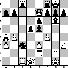 | game notation in PGN-format [Event "Wrixum Open die II."] [Site "www.myChess.de"] [Date "2005.06.22"] [Round "1"] [White "Oma"] [Black "Joschi"] [ECO "A45"] [WhitemyELO "1389"] [BlackmyELO "1538"] [Result "0-1"] [TimeControl "10/1728000"] [WhiteDays "27"] [BlackDays "50"] [MyChessNo "14449"] 1. d4 Nf6 2. Nc3 d5 3. a3 Bf5 4. e3 e6 5. Bb5+ Nbd7 6. Nge2 c5 7. Ng3 Bg6 8. dxc5 Bxc5 9. b4 Bb6 10. O-O Rc8 11. Re1 Rxc3 12. Ba4 O-O 13. Ne2 Rc7 14. c3 Ne4 15. f3 Nxc3 16. Qd2 Nxe2+ 17. Rxe2 Nf6 18. Bb2 Qe7 19. Be5 Rcc8 20. h3 Bc7 21. Rc1 Bxe5 22. f4 Ne4 23. Qd1 Nc3 0-1 position notation in FEN-format 2r2rk1/pp2qppp/4p1b1/3pb3/BP3P2/P1n1P2P/4R1P1/2RQ2K1 - - - 3 24 Captured white pieces:                              Captured black pieces:                               Click on a captured piece in order to display the desired move!