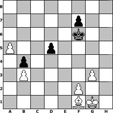 game notation in PGN-format [Event "martinus Open"] [Site "www.myChess.de"] [Date "2010.06.02"] [Round "1"] [White "deepsabel"] [Black "Lemmi11"] [ECO "D11"] [WhitemyELO "2024"] [BlackmyELO "1772"] [Result "1-0"] [TimeControl "10/1728000"] [WhiteDays "069"] [BlackDays "100"] [MyChessNo "66004"] 1. d4 d5 2. c4 c6 3. Nf3 e6 4. Qc2 Nf6 5. g3 g6 6. Bg2 Bg7 7. O-O O-O 8. Rd1 Nbd7 9. Nbd2 b5 10. b3 Qe7 11. e4 Bb7 12. a4 b4 13. Bb2 dxe4 14. Nxe4 Nxe4 15. Qxe4 Rfd8 16. Rd2 Bh6 17. Rd3 Rac8 18. Rad1 Bg7 19. Ne5 Qd6 20. Bc1 Qe7 21. Bf4 h6 22. h4 g5 23. hxg5 hxg5 24. Bc1 Nxe5 25. dxe5 Rxd3 26. Rxd3 Rd8 27. Rxd8+ Qxd8 28. Qg4 Bxe5 29. Bxg5 Qd4 30. Bf4+ Kf8 31. Bh6+ Ke7 32. Qg8 Qd1+ 33. Bf1 Qh5 34. Bg5+ Bf6 35. Bxf6+ Kxf6 36. Qb8 Ba6 37. Qxa7 Bc8 38. Qc7 Ba6 39. Qxc6 Bxc4 40. Qxc4 Qd5 41. Qxd5 exd5 42. a5 1-0 position notation in FEN-format 8/5p2/5k2/P2p4/1p6/1P4P1/5P2/5BK1 - - - 0 42 Captured white pieces: Captured black pieces: Click on a captured piece in order to display the desired move!