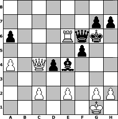 game notation in PGN-format [Event "Albspiele 21"] [Site "www.myChess.de"] [Date "2012.05.10"] [Round "1"] [White "Winston"] [Black "reisinger"] [ECO "C00"] [WhitemyELO "1474"] [BlackmyELO "1436"] [Result "1-0"] [TimeControl "10/1728000"] [WhiteDays "20"] [BlackDays "20"] [MyChessNo "81663"] 1. e4 e6 2. e5 d6 3. Nf3 Nc6 4. Bb5 a6 5. Bxc6+ bxc6 6. O-O Bb7 7. Re1 Ne7 8. d4 Ng6 9. Nc3 dxe5 10. Nxe5 Nxe5 11. Rxe5 Bd6 12. Re1 O-O 13. Qg4 f5 14. Qd1 Qf6 15. a3 Rad8 16. f4 Bc5 17. Be3 Bxd4 18. Qf3 Bxc3 19. bxc3 Qxc3 20. Qf2 Rd5 21. Rab1 Rb5 22. Rbd1 e5 23. a4 Rd5 24. Rxd5 cxd5 25. fxe5 Qxe5 26. Bd4 Qd6 27. Bc5 Qg6 28. Bxf8 Kxf8 29. Qd2 c5 30. Qe3 Qf6 31. Qxc5+ Kg8 32. Re8+ Kf7 33. Re3 d4 34. Re5 Be4 35. Qc4+ Kg6 36. Re6 1-0 position notation in FEN-format 8/6pp/p3Rqk1/5p2/P1Qpb3/8/2P1P1PP/6K1 - - - 5 36 Captured white pieces: Captured black pieces: Click on a captured piece in order to display the desired move!