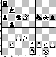 game notation in PGN-format [Event "Aljechin zum z\'Nacht...."] [Site "www.myChess.de"] [Date "2006.09.09"] [Round "2"] [White "wasserandy"] [Black "Juliette2103"] [ECO "B02"] [WhitemyELO "1860"] [BlackmyELO "1687"] [Result "1-0"] [TimeControl "10/864000"] [WhiteDays "10"] [BlackDays "08"] [MyChessNo "28301"] 1. e4 Nf6 2. e5 Nd5 3. Bc4 Nb6 4. Bb3 c5 5. d3 Nc6 6. Nf3 e6 7. O-O Be7 8. Nc3 O-O 9. Be3 a6 10. Ne4 d5 11. exd6 Bxd6 12. Bxc5 Bxc5 13. Nxc5 Nd5 14. Re1 b6 15. Ne4 Bb7 16. c3 Nf6 17. Neg5 h6 18. Nxf7 Kxf7 19. Bxe6+ Kg6 20. Nh4+ Kh7 21. Bf5+ Kg8 22. Ng6 Re8 23. Rxe8+ Qxe8 24. Qb3+ Kh7 25. Ne5+ g6 26. Bxg6+ Qxg6 27. Nxg6 Kxg6 28. Re1 b5 29. a4 Na5 30. Qb4 Nc6 31. Qd6 1-0 position notation in FEN-format r7/1b6/p1nQ1nkp/1p6/P7/2PP4/1P2PPPP/4R1K1 - - - 4 31 Captured white pieces: ![]() ![]() ![]() ![]() ![]() ![]() ![]() ![]() ![]() ![]() ![]() ![]() ![]() ![]() ![]() Captured black pieces: ![]() ![]() ![]() ![]() ![]() ![]() ![]() ![]() ![]() ![]() ![]() ![]() ![]() ![]() ![]() Click on a captured piece in order to display the desired move!