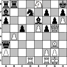 game notation in PGN-format [Event "M"] [Site "www.myChess.de"] [Date "2009.03.12"] [Round "1"] [White "kischok46"] [Black "nordlicht"] [ECO "A40"] [WhitemyELO "2022"] [BlackmyELO "1953"] [Result "1-0"] [TimeControl "10/1728000"] [WhiteDays "20"] [BlackDays "20"] [MyChessNo "53619"] 1. d4 e6 2. e4 d5 3. e5 c5 4. c3 Nc6 5. Nf3 Qb6 6. Bd3 Bd7 7. dxc5 Bxc5 8. O-O Qc7 9. b4 Bb6 10. Bf4 Nge7 11. Na3 a6 12. Rb1 Ng6 13. Bg3 O-O 14. c4 Nce7 15. c5 Ba7 16. h4 Rfe8 17. h5 Nf8 18. Qd2 b6 19. h6 g6 20. Nh2 bxc5 21. Ng4 Kh8 22. Nf6 Reb8 23. Qf4 Nf5 24. Bxf5 exf5 25. Nxd5 Qc6 26. Nf6 Be6 27. Rbc1 Qa4 28. Qg5 Qxa3 29. Ne8 Nd7 30. Rcd1 1-0 position notation in FEN-format rr2N2k/b2n1p1p/p3b1pP/2p1PpQ1/1P6/q5B1/P4PP1/3R1RK1 - - - 3 30 Captured white pieces: Captured black pieces: Click on a captured piece in order to display the desired move!