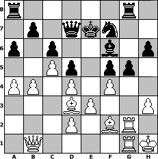 game notation in PGN-format [Event "960-Adventsturnier 2017"] [Site "www.myChess.de"] [Date "2017.12.03"] [Round "1"] [White "Erich"] [Black "espero"] [Variant "Fischerrandom"] [SetUp "1"] [FEN "nnrqkbbr/pppppppp/8/8/8/8/PPPPPPPP/NNRQKBBR w KQkq - 0 1"] [WhitemyELO "2110"] [BlackmyELO "2048"] [Result "1-0"] [TimeControl "10/2592000"] [WhiteDays "30"] [BlackDays "22"] [MyChessNo "110571"] 1. d4 f5 2. Nc3 g6 3. e3 a6 4. Nb3 Bxb3 5. axb3 Bg7 6. Bc4 e6 7. h3 d5 8. Be2 Nb6 9. Bh2 N8d7 10. Na4 Nxa4 11. bxa4 Nf6 12. O-O O-O 13. c4 c6 14. c5 Ne4 15. f3 Ng5 16. b4 Nf7 17. f4 Ra8 18. Qe1 h6 19. g4 Kh7 20. Bg3 Rg8 21. Bd3 Qd7 22. Rc2 Bf6 23. Kh1 Kg7 24. Rg2 Kf8 25. Bf2 Ke7 26. Rfg1 g5 27. gxf5 exf5 28. Qb1 1-0 position notation in FEN-format r5r1/1p1qkn2/p1p2b1p/2Pp1pp1/PP1P1P2/3BP2P/3P1BR1/1Q4RK - - - 1 28 Captured white pieces: Captured black pieces: Click on a captured piece in order to display the desired move!