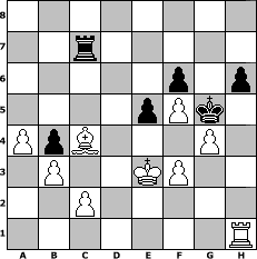 game notation in PGN-format [Event "Die letzten Sommertage!!!"] [Site "www.myChess.de"] [Date "2009.09.12"] [Round "1"] [White "Andylein1989"] [Black "Gauss1233"] [ECO "B01"] [WhitemyELO "1549"] [BlackmyELO "1400"] [Result "1-0"] [TimeControl "10/864000"] [WhiteDays "23"] [BlackDays "26"] [MyChessNo "58971"] 1. e4 d5 2. exd5 Qxd5 3. Nc3 Qd8 4. Nf3 e6 5. Bc4 Nf6 6. d3 Be7 7. O-O O-O 8. Bf4 a6 9. Re1 b5 10. Bb3 Bb7 11. a4 b4 12. Ne4 Nxe4 13. dxe4 Bd6 14. Bxd6 cxd6 15. Qd2 a5 16. Rad1 Ra6 17. Bc4 Ra8 18. Qxd6 Qxd6 19. Rxd6 Nc6 20. Rd7 Rab8 21. Bb5 Na7 22. Bc4 Rfd8 23. Rxd8+ Rxd8 24. Bd3 h6 25. Nd2 f6 26. f3 Kf7 27. Nc4 e5 28. Nxa5 Ba8 29. Nc4 Nc6 30. Nb6 Na5 31. Rd1 Bc6 32. Kf2 Kg6 33. Ke2 Kg5 34. b3 g6 35. g3 Rb8 36. h4+ Kh5 37. Rh1 g5 38. g4+ Kg6 39. Nc4 Bd7 40. Nxa5 Rc8 41. Bc4 Rc5 42. Nb7 Rc7 43. Nd6 Rc6 44. Nf5 Rc7 45. hxg5 Bxf5 46. exf5+ Kxg5 47. Ke3 1-0 position notation in FEN-format 8/2r5/5p1p/4pPk1/PpB3P1/1P2KP2/2P5/7R - - - 1 47 Captured white pieces: ![]() ![]() ![]() ![]() ![]() ![]() ![]() ![]() ![]() ![]() ![]() ![]() ![]() ![]() ![]() Captured black pieces: ![]() ![]() ![]() ![]() ![]() ![]() ![]() ![]() ![]() ![]() ![]() ![]() ![]() ![]() ![]() Click on a captured piece in order to display the desired move!