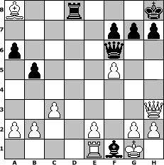 game notation in PGN-format [Event "Dabei ist alles 5"] [Site "www.myChess.de"] [Date "2008.10.26"] [Round "1"] [White "Juliette2103"] [Black "Knight"] [ECO "C28"] [WhitemyELO "1503"] [BlackmyELO "1155"] [Result "0-1"] [TimeControl "10/864000"] [WhiteDays "00"] [BlackDays "10"] [MyChessNo "49153"] 1. e4 e5 2. Nc3 Nf6 3. Bc4 Nc6 4. d3 Bc5 5. f4 O-O 6. Nf3 Nd4 7. fxe5 Ne8 8. Na4 Nxf3+ 9. Qxf3 d6 10. exd6 Bxd6 11. O-O Qe7 12. Bf4 a6 13. Bxd6 Nxd6 14. Bb3 b5 15. Nc3 c5 16. Nd5 Qe5 17. c3 c4 18. Bc2 cxd3 19. Bxd3 Be6 20. Ne7+ Kh8 21. Nf5 Nxf5 22. exf5 Bd5 23. Qh3 Qf6 24. Rae1 Rfd8 25. Be4 Bc4 26. Bxa8 Bxf1 0-1 position notation in FEN-format B2r3k/5ppp/p4q2/1p3P2/8/2P4Q/PP2P1PP/4RbK1 - - - 0 27 Captured white pieces: ![]() ![]() ![]() ![]() ![]() ![]() ![]() ![]() ![]() ![]() ![]() ![]() ![]() ![]() ![]() Captured black pieces: ![]() ![]() ![]() ![]() ![]() ![]() ![]() ![]() ![]() ![]() ![]() ![]() ![]() ![]() ![]() Click on a captured piece in order to display the desired move!