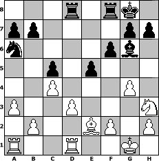 game notation in PGN-format [Event "Wrixum - Open die III."] [Site "www.myChess.de"] [Date "2006.10.24"] [Round "1"] [White "Bauer91"] [Black "Juri"] [ECO "B27"] [WhitemyELO "1477"] [BlackmyELO "1536"] [Result "1/2-1/2"] [TimeControl "10/3456000"] [WhiteDays "118"] [BlackDays "039"] [MyChessNo "29476"] 1. e4 c5 2. Nf3 d5 3. exd5 Qxd5 4. c4 Qf5 5. Nc3 e5 6. Be2 Be7 7. Nd5 Na6 8. Nxe7 Nxe7 9. O-O Ng6 10. d3 O-O 11. Ng5 Nf4 12. Bxf4 Qxf4 13. Qc1 Qf6 14. Ne4 Qg6 15. Qg5 Qxg5 16. Nxg5 Bf5 17. g4 f6 18. Nh3 Bg6 19. a3 Rad8 20. Rfd1 1/2-1/2 position notation in FEN-format 3r1rk1/pp4pp/n4pb1/2p1p3/2P3P1/P2P3N/1P2BP1P/R2R2K1 - - - 2 20 Captured white pieces: Captured black pieces: Click on a captured piece in order to display the desired move!