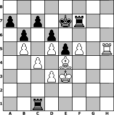 game notation in PGN-format [Event "wie w"] [Site "www.myChess.de"] [Date "2013.11.16"] [Round "1"] [White "lotchi"] [Black "borsti"] [ECO "C41"] [WhitemyELO "1175"] [BlackmyELO "1203"] [Result "1/2-1/2"] [TimeControl "10/1728000"] [WhiteDays "20"] [BlackDays "20"] [MyChessNo "91117"] 1. e4 e5 2. Nf3 d6 3. Nc3 Bg4 4. d3 Nf6 5. Be2 Bxf3 6. Bxf3 h6 7. Be3 Nc6 8. Nd5 Nxd5 9. exd5 Ne7 10. c3 Qd7 11. h3 b6 12. O-O Qb5 13. b3 g5 14. c4 Qb4 15. Bd2 Qc5 16. Be3 Qb4 17. Bd2 Qc5 18. Be3 Qb4 19. Qe1 Qxe1 20. Rfxe1 Bg7 21. Rab1 Nf5 22. g4 Nh4 23. Bg2 O-O 24. f3 f5 25. Bf2 Ng6 26. gxf5 Rxf5 27. a4 Nf4 28. Red1 Ne2+ 29. Kf1 Nc3 30. Ra1 Nxd1 31. Rxd1 Raf8 32. Ke2 Bf6 33. b4 Be7 34. b5 Rf4 35. Bg3 R4f5 36. Rf1 h5 37. Ke3 Kg7 38. Bh2 g4 39. hxg4 hxg4 40. f4 Bh4 41. Be4 R5f6 42. Rg1 g3 43. Bxg3 Bxg3 44. Rxg3+ Kf7 45. f5 Rg8 46. Rh3 Rg4 47. Rh7+ Rg7 48. Rh3 Kf8 49. Kf3 Rg1 50. Kf2 Ra1 51. Rh8+ Ke7 52. Rh7+ Kd8 53. Rh8+ Ke7 54. Rh7+ Rf7 55. Rh6 Rf6 56. Rh7+ Rf7 57. Rh6 Rxa4 58. Ke3 Ra2 59. Rh5 Ra1 60. Ke2 Rg1 61. Kf2 Rc1 62. Ke3 1/2-1/2 position notation in FEN-format 8/p1p1kr2/1p1p4/1P1PpP1R/2P1B3/3PK3/8/2r5 - - - 9 62 Captured white pieces: Captured black pieces: Click on a captured piece in order to display the desired move!
