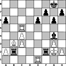 game notation in PGN-format [Event "zum Dritten"] [Site "www.myChess.de"] [Date "2012.12.05"] [Round "1"] [White "sprinterde"] [Black "Wernburger"] [ECO "B50"] [WhitemyELO "1636"] [BlackmyELO "1635"] [Result "0-1"] [TimeControl "10/864000"] [WhiteDays "10"] [BlackDays "10"] [MyChessNo "85310"] 1. e4 c5 2. Nf3 d6 3. Bc4 e6 4. O-O Nc6 5. d4 cxd4 6. Nxd4 Nf6 7. Nc3 a6 8. Bg5 Be7 9. Nxc6 bxc6 10. e5 dxe5 11. Re1 Nd5 12. Bxe7 Qxe7 13. Rxe5 Nxc3 14. bxc3 O-O 15. Qf3 Bb7 16. Re1 Rad8 17. Qe3 Rd7 18. Rh5 Qf6 19. Qe5 Qxe5 20. Rxe5 Rfd8 21. Bd3 Rc7 22. g3 g6 23. Rb1 c5 24. c4 Rd6 25. Re1 Rb6 26. c3 Rd7 27. Bc2 Rb2 28. Bb3 Rdd2 29. Rf1 Bf3 30. Rxc5 Be2 31. Re1 Bg4 32. Kg2 Rxf2+ 0-1 position notation in FEN-format 6k1/5p1p/p3p1p1/2R5/2P3b1/1BP3P1/Pr3rKP/4R3 - - - 0 33 Captured white pieces: ![]() ![]() ![]() ![]() ![]() ![]() ![]() ![]() ![]() ![]() ![]() ![]() ![]() ![]() ![]() Captured black pieces: ![]() ![]() ![]() ![]() ![]() ![]() ![]() ![]() ![]() ![]() ![]() ![]() ![]() ![]() ![]() Click on a captured piece in order to display the desired move!