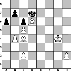 game notation in PGN-format [Event "Gegen die Herbstdepression"] [Site "www.myChess.de"] [Date "2008.12.01"] [Round "1"] [White "rux"] [Black "alpacino"] [ECO "A13"] [WhitemyELO "1378"] [BlackmyELO "1362"] [Result "1-0"] [TimeControl "10/864000"] [WhiteDays "10"] [BlackDays "10"] [MyChessNo "50359"] 1. c4 e6 2. e4 Nc6 3. Nf3 Nf6 4. e5 Bc5 5. exf6 g6 6. a3 Qxf6 7. Be2 Ne5 8. d4 Nxf3+ 9. Bxf3 Bxd4 10. Qe2 O-O 11. O-O Bc5 12. Nd2 Qg7 13. Rb1 d6 14. b4 Bb6 15. Rd1 Bd4 16. Nf1 Be5 17. g3 c6 18. Ne3 h5 19. Ng2 Bd7 20. Be3 a6 21. Qd2 Qf6 22. Nh4 Bc3 23. Qxd6 Rfd8 24. Qf4 Qxf4 25. Bxf4 Bf6 26. Rd2 Be8 27. Rxd8 Rxd8 28. Ng2 Rd3 29. Ne1 Rxa3 30. Bg2 Kh7 31. c5 Ra2 32. Rd1 e5 33. Bd2 Bd7 34. Bc3 Bg4 35. f3 Bf5 36. Bf1 Be6 37. Ra1 Rxa1 38. Bxa1 Bd5 39. Kf2 Kh6 40. f4 Kg7 41. fxe5 Be7 42. Nd3 h4 43. Nf4 Be4 44. e6+ f6 45. gxh4 Bf5 46. Bh3 Bb1 47. Bf1 Kh6 48. Bc4 g5 49. hxg5+ fxg5 50. Nd3 Kh5 51. Kg3 g4 52. Kf4 Bg5+ 53. Kf5 Be7 54. Bf6 Bf8 55. Ke5 Bxd3 56. Bxd3 Kh6 57. e7 Bxe7 58. Bxe7 Kg7 59. Kf4 Kf7 60. Bd6 Ke6 61. Bc4+ Kd7 62. Kxg4 1-0 position notation in FEN-format 8/1p1k4/p1pB4/2P5/1PB3K1/8/2P4P/8 - - - 0 62 Captured white pieces: ![]() ![]() ![]() ![]() ![]() ![]() ![]() ![]() ![]() ![]() ![]() ![]() ![]() ![]() ![]() Captured black pieces: ![]() ![]() ![]() ![]() ![]() ![]() ![]() ![]() ![]() ![]() ![]() ![]() ![]() ![]() ![]() Click on a captured piece in order to display the desired move!