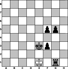 | game notation in PGN-format [Event "5 Jahre Wikinger"] [Site "www.myChess.de"] [Date "2009.12.13"] [Round "1"] [White "rikilatic"] [Black "UPS"] [ECO "B20"] [WhitemyELO "1433"] [BlackmyELO "1682"] [Result "0-1"] [TimeControl "10/864000"] [WhiteDays "10"] [BlackDays "10"] [MyChessNo "61529"] 1. e4 c5 2. Bc4 e6 3. Nf3 Be7 4. Nc3 a6 5. d4 cxd4 6. Nxd4 Nc6 7. Nxc6 bxc6 8. Qg4 Bf6 9. Bd2 Ne7 10. O-O d5 11. Bd3 dxe4 12. Bxe4 Qxd2 13. Rfd1 Qg5 14. Qf3 Bb7 15. Bd3 Bxc3 16. bxc3 O-O 17. Be4 Rfd8 18. Rd4 Nf5 19. Rxd8+ Rxd8 20. Bxf5 Qxf5 21. Qxf5 exf5 22. h4 g6 23. Rb1 Rd7 24. f3 h5 25. Kh2 c5 26. Kg3 Kg7 27. a4 Bc6 28. Rb6 Bxa4 29. Rxa6 Bxc2 30. Rc6 Rd5 31. c4 Rd4 32. Rxc5 Bb3 33. Rc7 Bxc4 34. Kf2 f4 35. Ke1 Be6 36. Ke2 Ra4 37. Kd3 Kf6 38. Ke2 Ke5 39. Rc5+ Bd5 40. Kd3 Ra3+ 41. Ke2 Kd4 42. Rc7 Ra1 43. Rd7 Rh1 44. Ra7 Rxh4 45. Kf2 Rh1 46. Ra4+ Bc4 47. g4 hxg4 48. fxg4 Rh3 49. Ra8 Rg3 50. Rd8+ Bd5 51. Ra8 Rxg4 52. Ra4+ Ke5 53. Ra5 f5 54. Kf1 f3 55. Kf2 Rg2+ 56. Kf1 g5 57. Rxd5+ Kxd5 58. Ke1 Kd4 59. Kf1 Ke3 60. Ke1 Rg1# 0-1 position notation in FEN-format 8/8/8/5pp1/8/4kp2/8/4K1r1 - - - 6 61 Captured white pieces:                              Captured black pieces:                               Click on a captured piece in order to display the desired move!