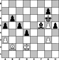 game notation in PGN-format [Event "1. Deutsche Fernschach-Einzelspielerliga (Gr.S4G3)"] [Site "www.myChess.de"] [Date "2008.01.01"] [Round "1"] [White "Hannes"] [Black "Steffi"] [ECO "C77"] [WhitemyELO "1410"] [BlackmyELO "1500"] [Result "0-1"] [TimeControl "10/3456000"] [WhiteDays "097"] [BlackDays "135"] [MyChessNo "41310"] 1. e4 e5 2. Nf3 Nc6 3. Bb5 a6 4. Ba4 Nf6 5. Nc3 Be7 6. d4 exd4 7. Bxc6 dxc3 8. Bd5 Nxd5 9. exd5 cxb2 10. Bxb2 Bb4+ 11. c3 Qe7+ 12. Kf1 Bc5 13. Qe1 O-O 14. Qxe7 Bxe7 15. c4 d6 16. Re1 Re8 17. Ng5 Bf5 18. h4 Bd3+ 19. Kg1 Bxg5 20. Rxe8+ Rxe8 21. hxg5 Re1+ 22. Kh2 Rxh1+ 23. Kxh1 Bxc4 24. a3 Bxd5 25. Kg1 b6 26. f4 c5 27. g3 Be6 28. Kf2 d5 29. Ke3 Bf5 30. Kf3 h5 31. Kf2 d4 32. Ke2 a5 33. Kd2 Kf8 34. Ba1 Ke7 35. Bb2 f6 36. Ba1 fxg5 37. fxg5 Kf7 38. Bb2 Kg6 0-1 position notation in FEN-format 8/6p1/1p4k1/p1p2bPp/3p4/P5P1/1B1K4/8 - - - 3 39 Captured white pieces: ![]() ![]() ![]() ![]() ![]() ![]() ![]() ![]() ![]() ![]() ![]() ![]() ![]() ![]() ![]() Captured black pieces: ![]() ![]() ![]() ![]() ![]() ![]() ![]() ![]() ![]() ![]() ![]() ![]() ![]() ![]() ![]() Click on a captured piece in order to display the desired move!