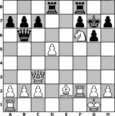 game notation in PGN-format [Event "Gegengambit 2"] [Site "www.myChess.de"] [Date "2014.08.02"] [Round "2"] [White "Erich"] [Black "Mattheus"] [ECO "C31"] [WhitemyELO "2062"] [BlackmyELO "1154"] [Result "1-0"] [TimeControl "10/2592000"] [WhiteDays "89"] [BlackDays "87"] [MyChessNo "95351"] 1. e4 e5 2. f4 d5 3. exd5 Qxd5 4. Nc3 Qe6 5. fxe5 Qxe5+ 6. Be2 Nf6 7. Nf3 Qe7 8. O-O g6 9. d4 Bg7 10. Bg5 Nbd7 11. Ne5 O-O 12. Nxd7 Bxd7 13. Bxf6 Bxf6 14. Nd5 Qd6 15. Nxf6+ Kh8 16. Qd2 Kg7 17. d5 Bf5 18. Rxf5 Qb6+ 19. Rf2 Rad8 20. Qc3 1-0 position notation in FEN-format 3r1r2/ppp2pkp/1q3Np1/3P4/8/2Q5/PPP1BRPP/R5K1 - - - 4 20 Captured white pieces: Captured black pieces: Click on a captured piece in order to display the desired move!